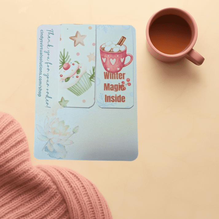 This handmade bookmark duo keeps your place beautifully while adding a sprinkle of seasonal joy to every chapter. One features a festive cupcake and star, and the other gives you the reminder we all need this time of year: “Winter Magic Inside.” ✨
